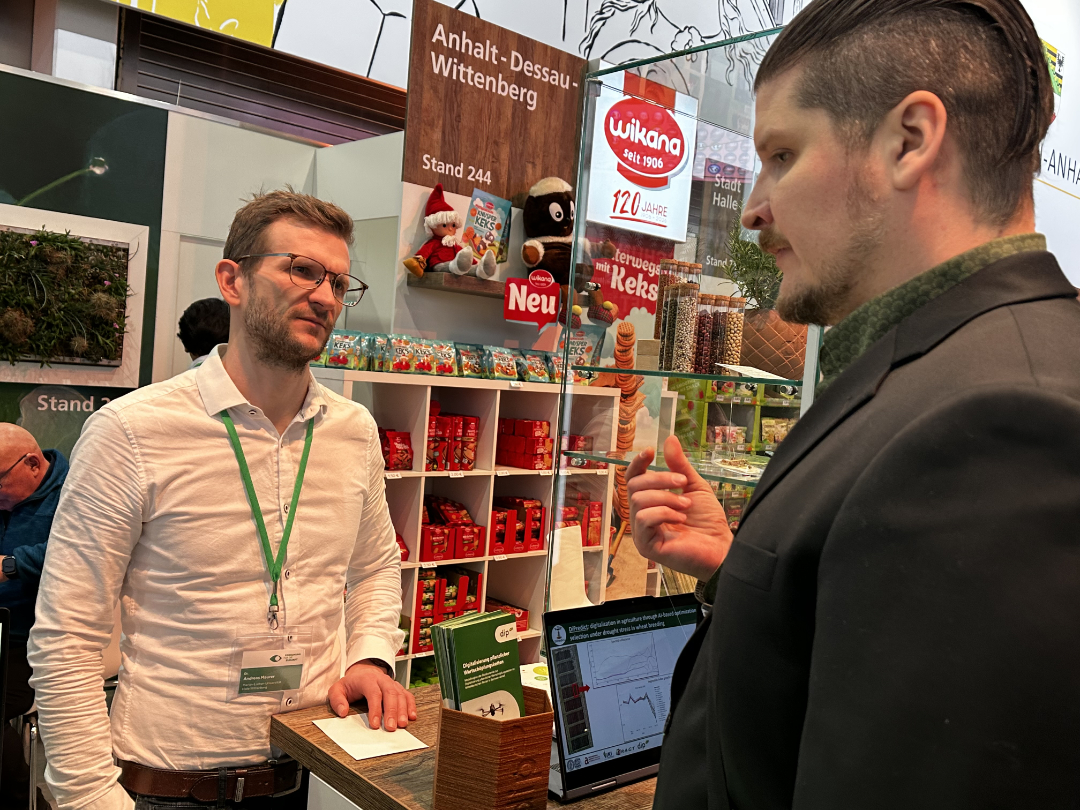 Die hochkarätige politische Resonanz zeigte die strategische Bedeutung der DiP-Forschung für die Region: Am Gemeinschaftsstand der Hochschulen Sachsen-Anhalts (Halle 23b, Stand 243) informierten DiP-Sprecher Prof. Dr. Klaus Pillen sowie ausgewählte DiP-Verbundprojekte über die vielfältigen Forschungsprojekte zur Digitalisierung pflanzlicher Wertschöpfungsketten im Strukturwandel des Mitteldeutschen Reviers.